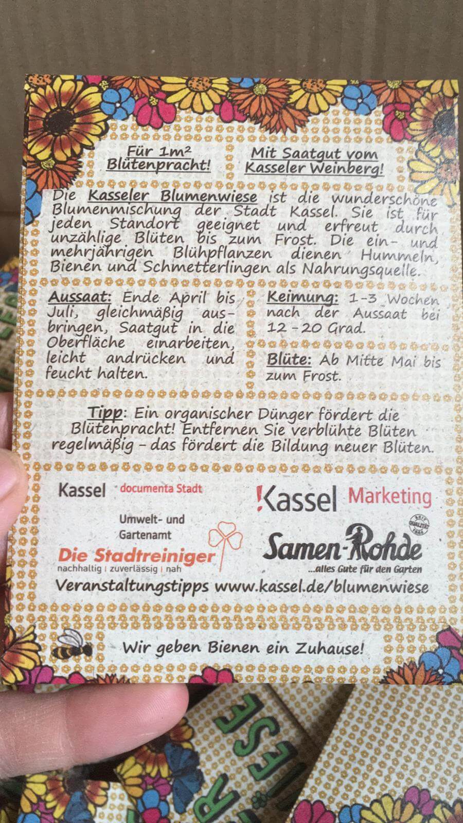 Samentütchen Kasseler Blumenwiese 1qm Rückseite